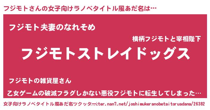 | 意味不明あだ名 | 『自称フジモト』『フジモトフォーエバー』 |