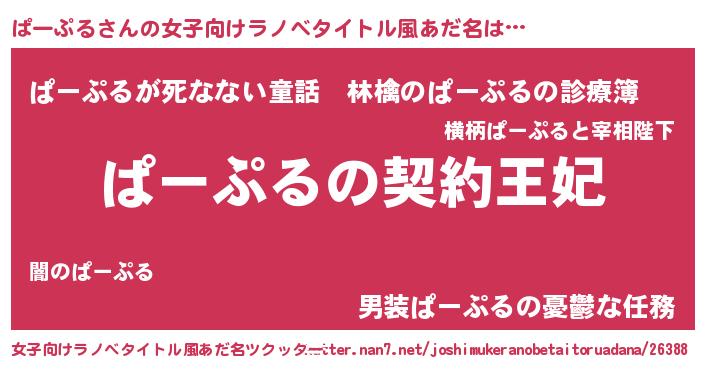 | 男性向けラノベタイトル風あだ名 | 『ぱーぷるという概念が存在しない退屈な世界 』 |