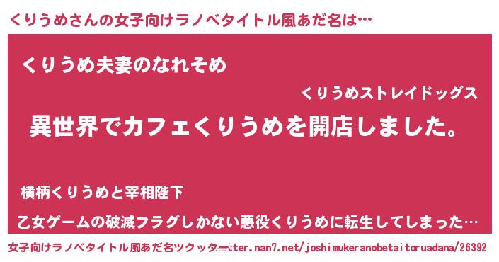 | 胡散臭い通販商品みたいなあだ名 | 『前代未聞の水素水…その名も「くりうめ」』 |