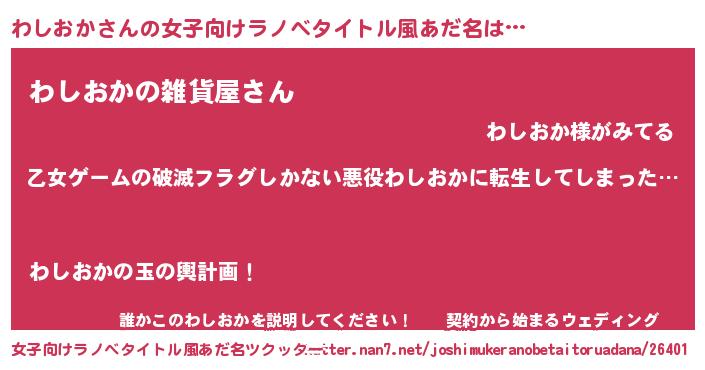 | 男性向けラノベタイトル風あだ名 | 『この素晴らしい世界にわしおかを!』 |