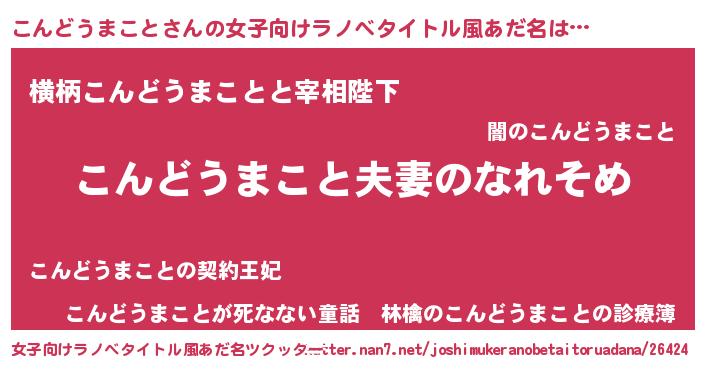 | 男性向けラノベタイトル風あだ名 | 『おまえをオタクにしてやるから、俺をこんどうまことにしてくれ! 』 |