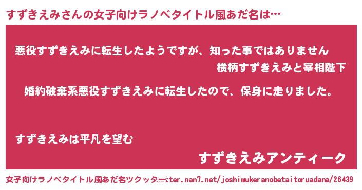 | 男性向けラノベタイトル風あだ名 | 『スズキエミスレイヤー』 |