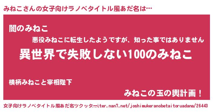 | 意味不明あだ名 | 『永久保存みねこ』『自称みねこ』 |