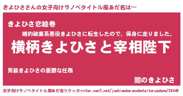 | ヘコむあだ名 | 『きよひさ(小並感)』『きよっちょ』 |