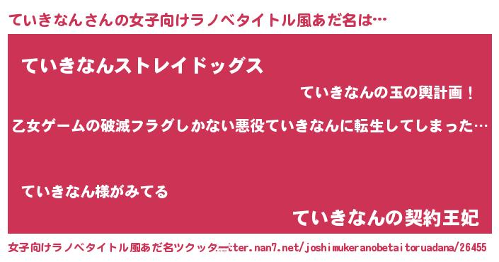 | 男性向けラノベタイトル風あだ名 | 『魔弾の王とていきなん』 |