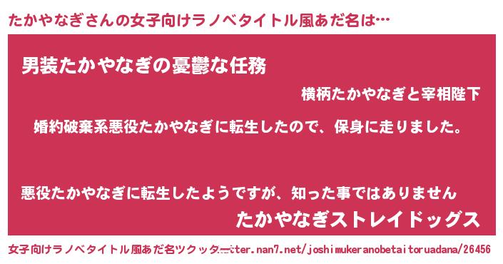 | 男性向けラノベタイトル風あだ名 | 『タカヤナギスレイヤー』 |