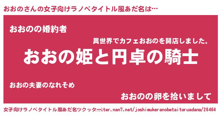| 男性向けラノベタイトル風あだ名 | 『オオノアートオンライン』 |
