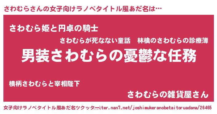 | 男性向けラノベタイトル風あだ名 | 『冴えないさわむらの育てかた』 |
