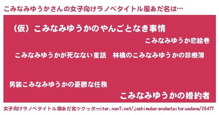 | 伝説のあだ名 | 『伝説のスナイパーこみなみゆうか』 |