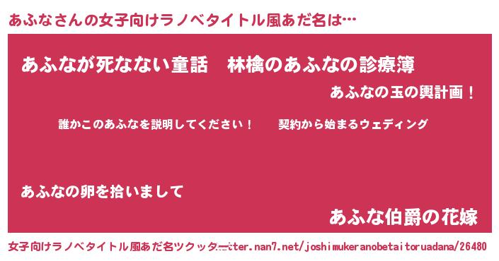 | 男性向けラノベタイトル風あだ名 | 『アフナアートオンライン』 |