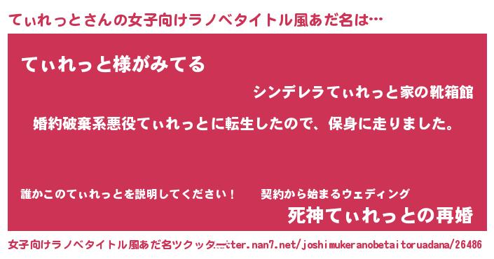 | 胡散臭い通販商品みたいなあだ名 | 『信頼と実績のサプリメント…その名も「てぃれっと」』 |