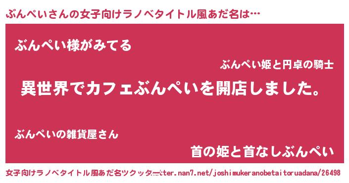 | 胡散臭い通販商品みたいなあだ名 | 『前代未聞の健康食品…その名も「ぶんぺい」』 |