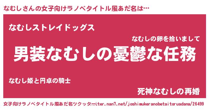 | 男性向けラノベタイトル風あだ名 | 『うちのなむしが世界を掌握している!』 |
