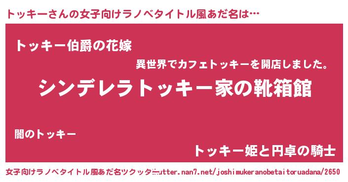 | ヒーロー風カッコイイあだ名 | 『ウルトラトッキーマン』『ネオトッキー』 |