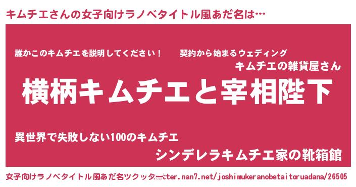| 男性向けラノベタイトル風あだ名 | 『キムチエに滅ぼされるだけの簡単なお仕事です』 |
