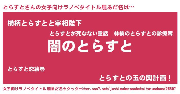 | 男性向けラノベタイトル風あだ名 | 『Re:とらすとから始める異世界生活』 |