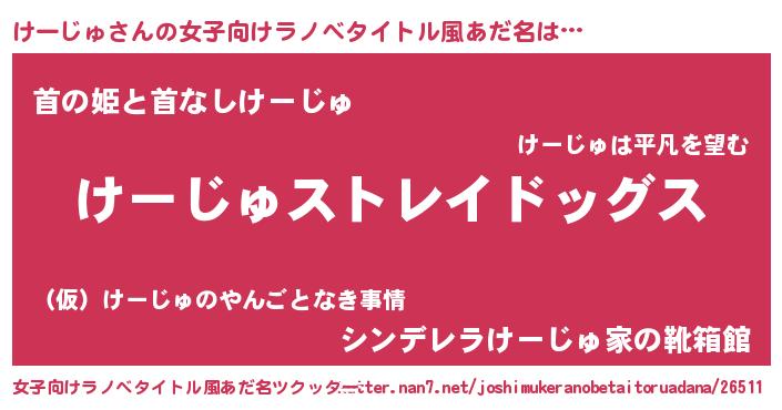 | 肩書あだ名 | 『けーじゅ閣下』『けーじゅディレクター』 |