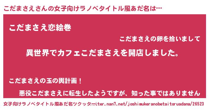 | 意味不明あだ名 | 『永久保存こだまさえ』 |