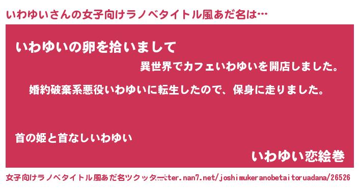 | 男性向けラノベタイトル風あだ名 | 『転生したらいわゆいだった件』 |