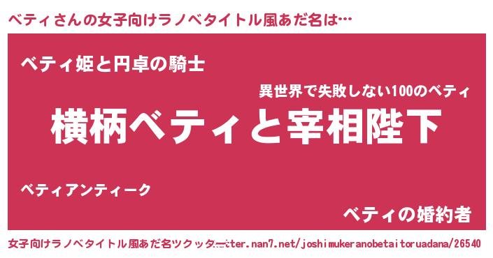| 男性向けラノベタイトル風あだ名 | 『ベティに滅ぼされるだけの簡単なお仕事です』 |