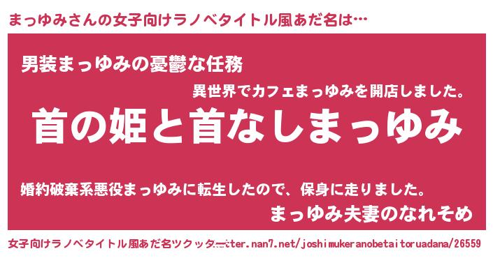 | ヒーロー風カッコイイあだ名 | 『正義の使者まっゆみ』『ネオマッユミ』 |