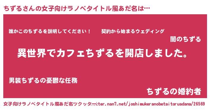| ヘコむあだ名 | 『ちずる(遠い目)』『ちずもー』 |
