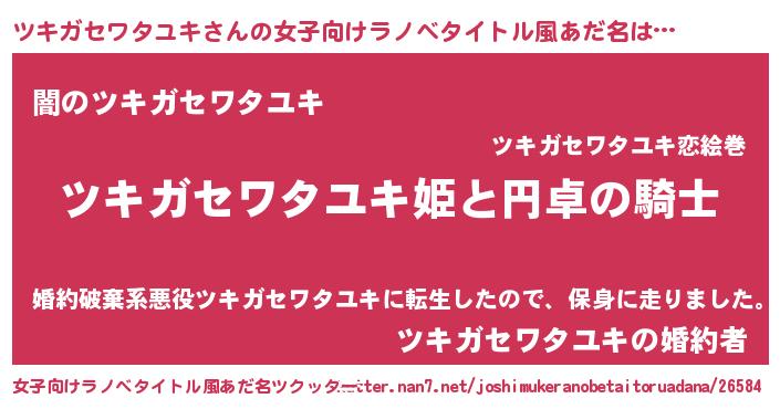 | 男性向けラノベタイトル風あだ名 | 『ツキガセワタユキアートオンライン』 |