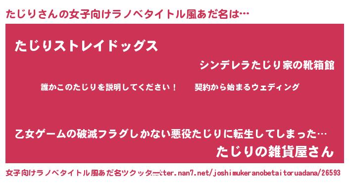 | 胡散臭い通販商品みたいなあだ名 | 『億万長者になれる水晶球…その名も「たじり」』 |