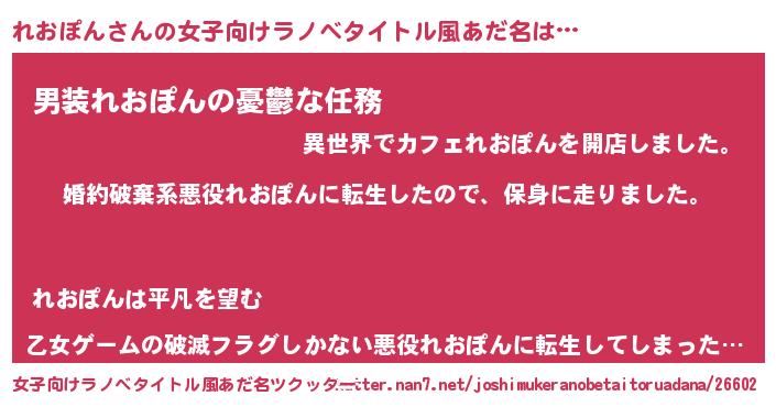 | 伝説のあだ名 | 『聞きしに勝る吟遊詩人れおぽん』 |