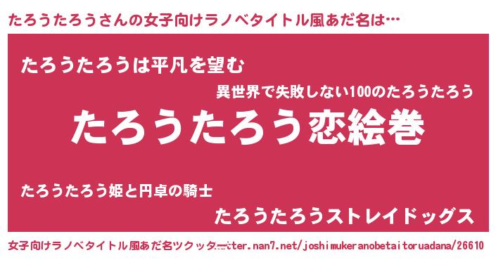 | ヘコむあだ名 | 『たろ太郎』『たろうたろう(苦笑)』 |