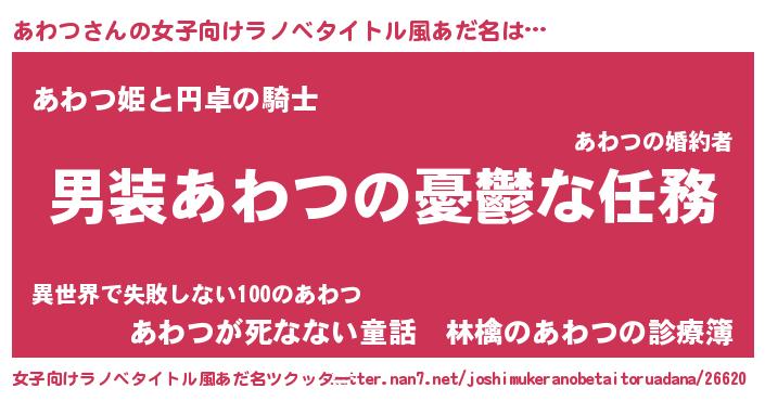 | 胡散臭い通販商品みたいなあだ名 | 『モテモテ間違いなしブレスレット…その名も「あわつ」』 |