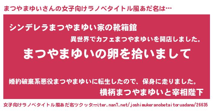 | ヘコむあだ名 | 『まつっちょ』『まつやまゆい(苦笑)』 |