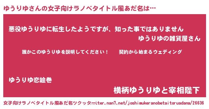 | 胡散臭い通販商品みたいなあだ名 | 『億万長者になれるブレスレット…その名も「ゆうりゆ」』 |