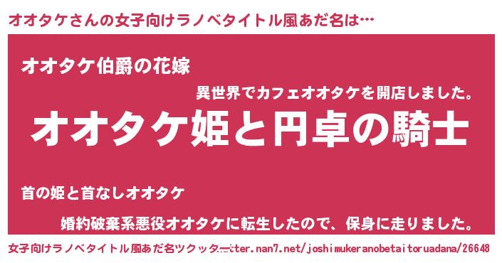 | 男性向けラノベタイトル風あだ名 | 『オオタケアートオンライン』 |