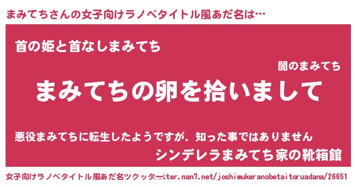 | 男性向けラノベタイトル風あだ名 | 『まみてちの嫁は女の子じゃないと思った?』 |