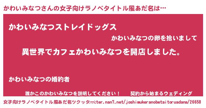 | ヘコむあだ名 | 『かわいみなつ(笑)』『かわっふぃ~』 |
