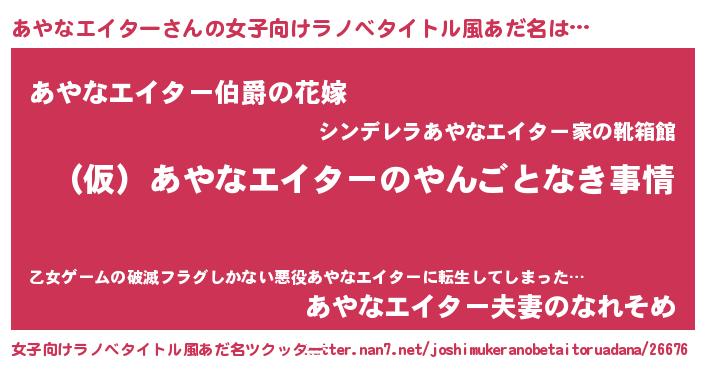 | 胡散臭い通販商品みたいなあだ名 | 『必ず成功する霊験あらたかなお札…その名も「あやなエイター」』 |