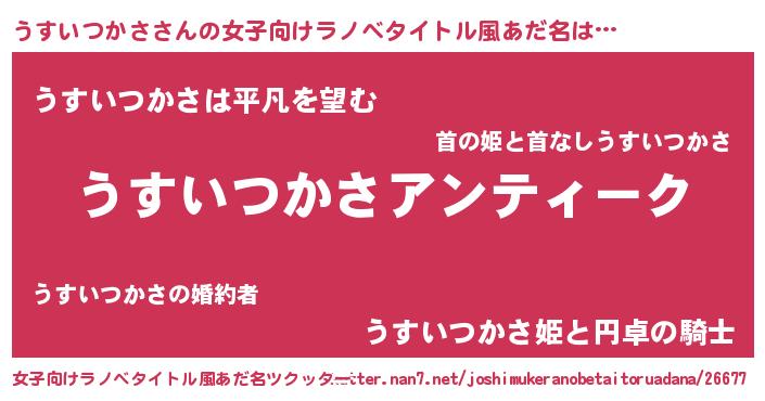 | 意味不明あだ名 | 『自称うすいつかさ』 |