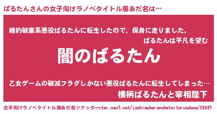 | 男性向けラノベタイトル風あだ名 | 『Re:ばるたんから始める異世界生活』 |