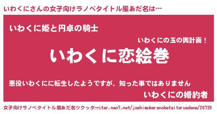 | 男性向けラノベタイトル風あだ名 | 『おまえをオタクにしてやるから、俺をいわくににしてくれ! 』 |