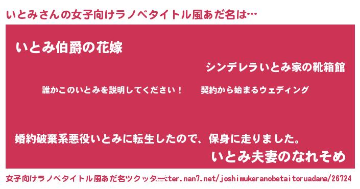 | ヘコむあだ名 | 『いとにゅー』『豆乳』『いとみ(笑)』 |