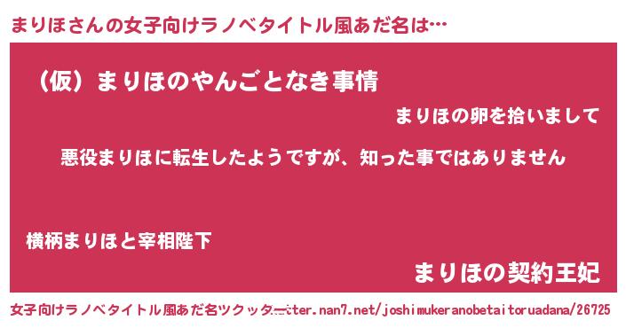| 男性向けラノベタイトル風あだ名 | 『この素晴らしい世界にまりほを!』 |