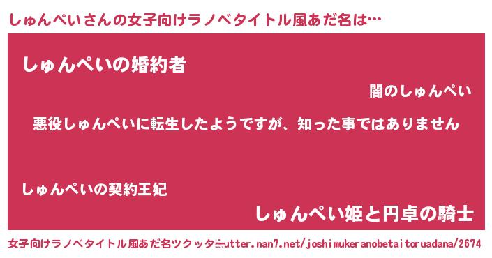 | 男性向けラノベタイトル風あだ名 | 『この素晴らしい世界にしゅんぺいを!』 |