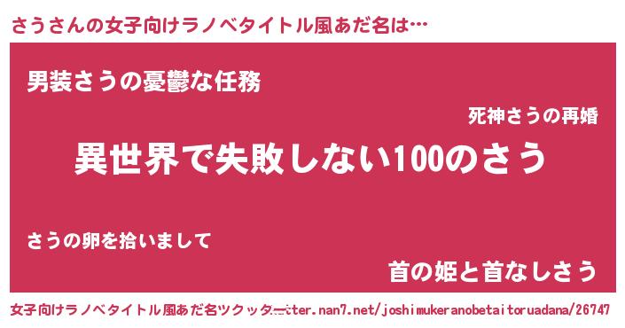 | 男性向けラノベタイトル風あだ名 | 『さうという概念が存在しない退屈な世界 』 |