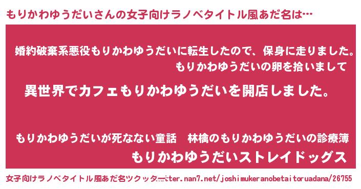 | ヘコむあだ名 | 『もりかわゆうだい(震え声)』『もりお』 |