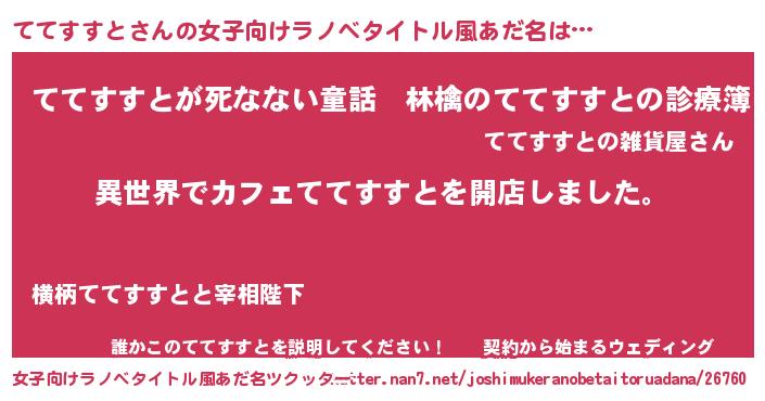 | 男性向けラノベタイトル風あだ名 | 『誰もが恐れるあのててすすとが、ぼくの専属メイドになるようです。』 |