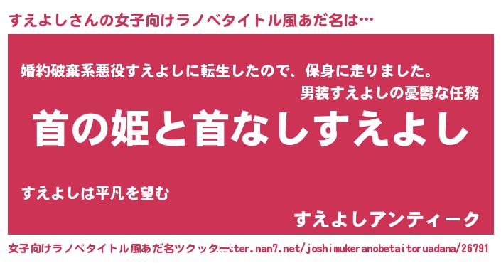 | 男性向けラノベタイトル風あだ名 | 『はたらくすえよしさま!』 |