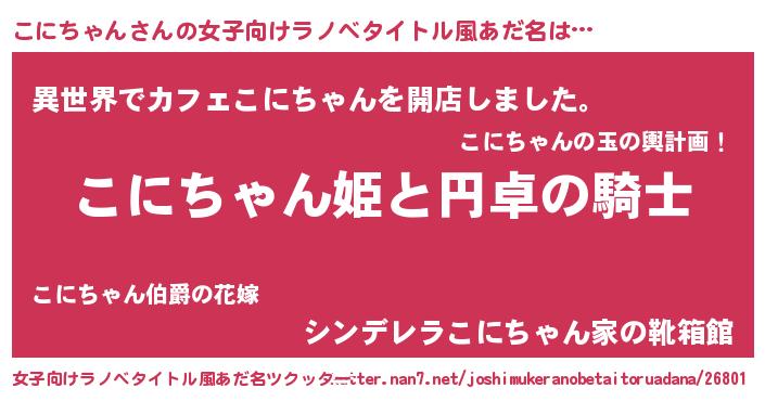 | 男性向けラノベタイトル風あだ名 | 『こにちゃんの憂鬱』『緋弾のコニチャン』 |