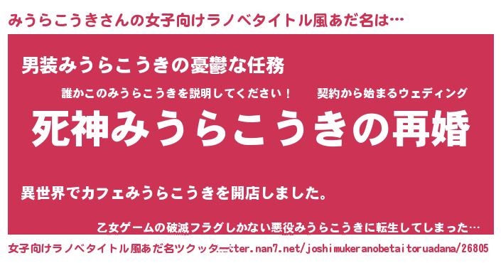 | 男性向けラノベタイトル風あだ名 | 『ノーゲーム・ノーミウラコウキ』 |