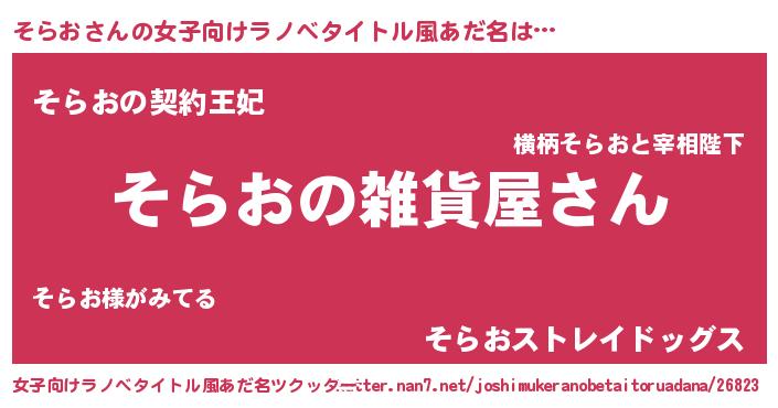 | 男性向けラノベタイトル風あだ名 | 『やはりそらおの青春ラブコメはまちがっている 』 |
